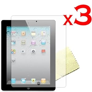 Protect your iPad 2 with this generic Clear Screen Protector. This High quality transparent clear screen protector repels dust and reduces glare. Film is simple to install. Film does not leave adhesive residue after being removed from the screen. Custom design for the phone, with precise cuts. Does not interfere with touch screen usability and protects the LCD. Smooth feeling of your phone's display is left unchanged. Provides Maximum UV Protection. Crystal Clear - Totally Transparent. Quantity: 3 Clear Protective Film + 3 Cleaning Cloth.